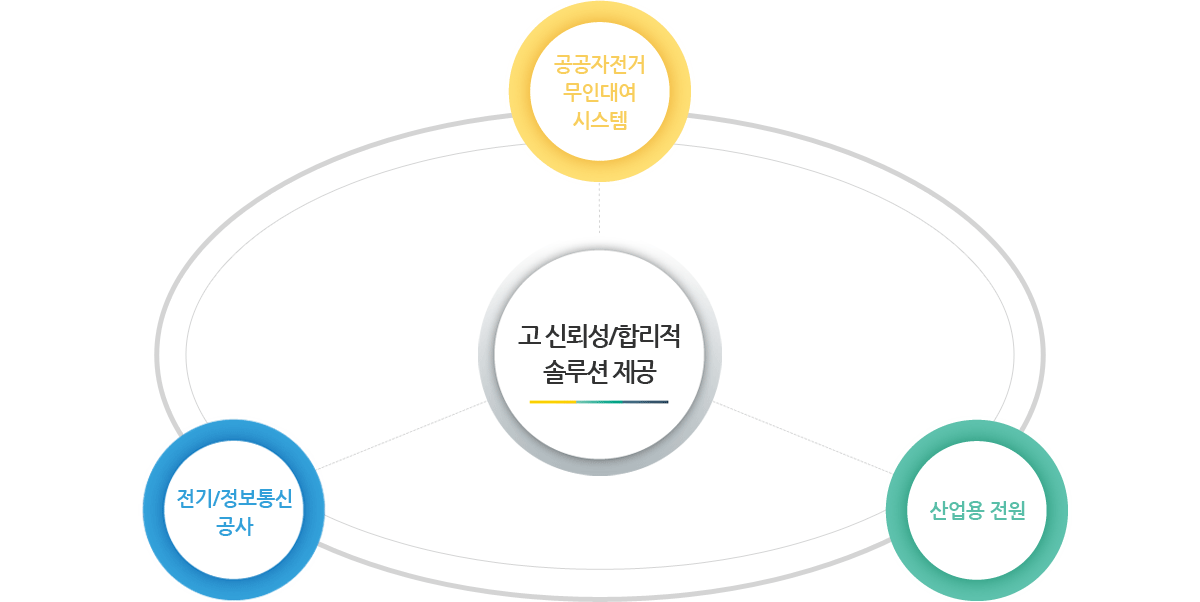 공공자전거 무인대여 시스템과 태양광 인버터제품에 융복합하여 시장 선도적 제품과 서비스를 제공하고 있습니다.